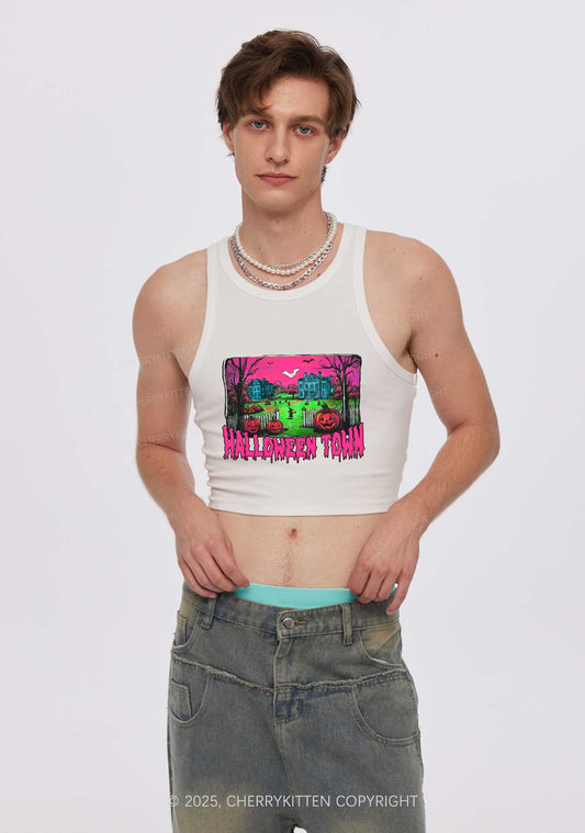 Halloween Ghost Town Y2K Crop Tank Top Cherrykitten