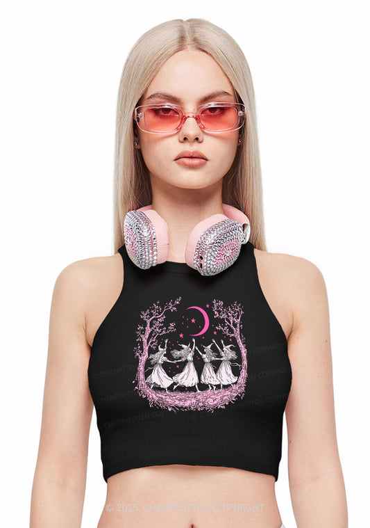 Halloween Witches Dancing Under Moon Y2K Crop Tank Top Cherrykitten