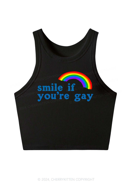 Rainbow Smile If You're Gay Y2K Crop Tank Top Cherrykitten