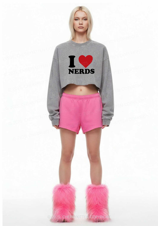 I Love Nerds Y2K Crop Washed Sweatshirts Cherrykitten