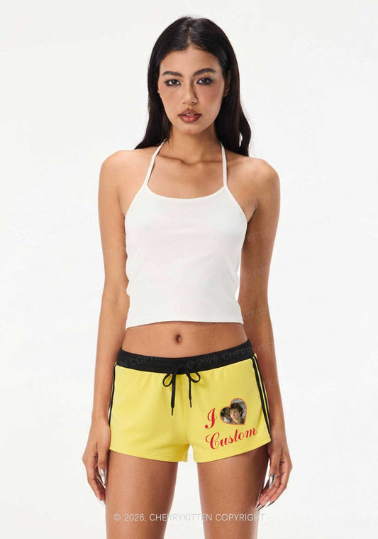 I Love Custom Photo Valentine's Day Y2K Drawstring Mini Shorts Cherrykitten