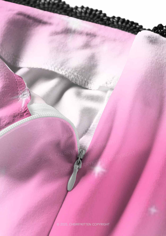 Love Me Not Men Pink Valentine's Day Y2K Print Mini Skirt Cherrykitten