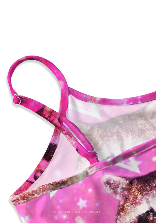 Sparkly Raccoon Heart Valentine's Day Y2K Print Cami Crop Top Cherrykitten