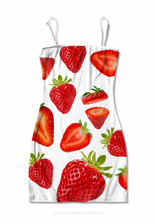 White Strawberry Y2K Print Slip Dress Cherrykitten