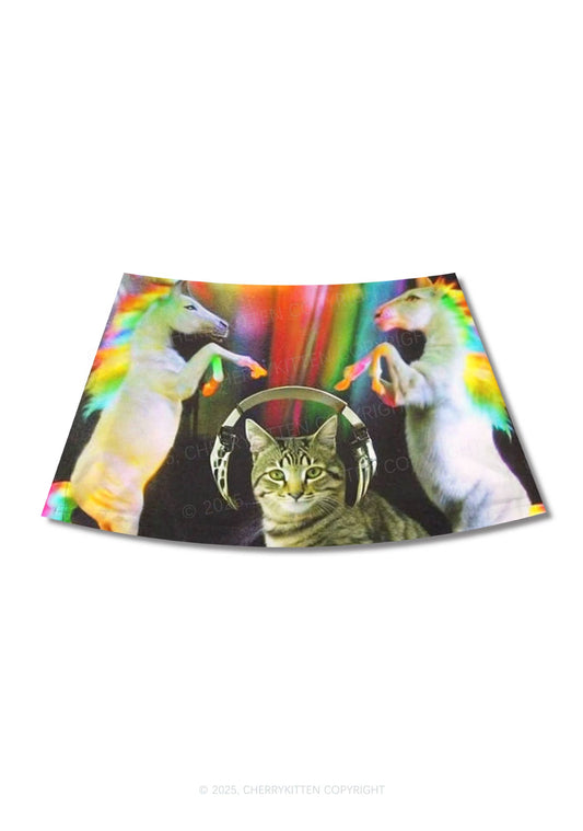DJ Cat Unicorn Y2K Print Mini Skirt Cherrykitten