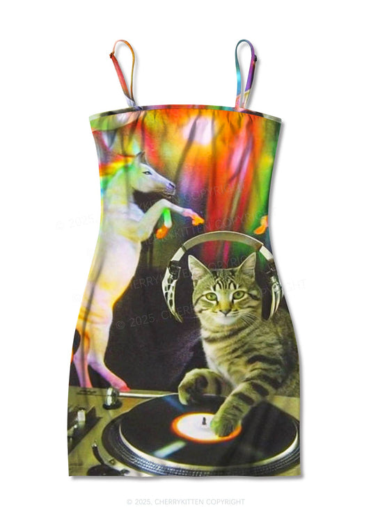 DJ Cat Unicorn Y2K Print Slip Dress Cherrykitten