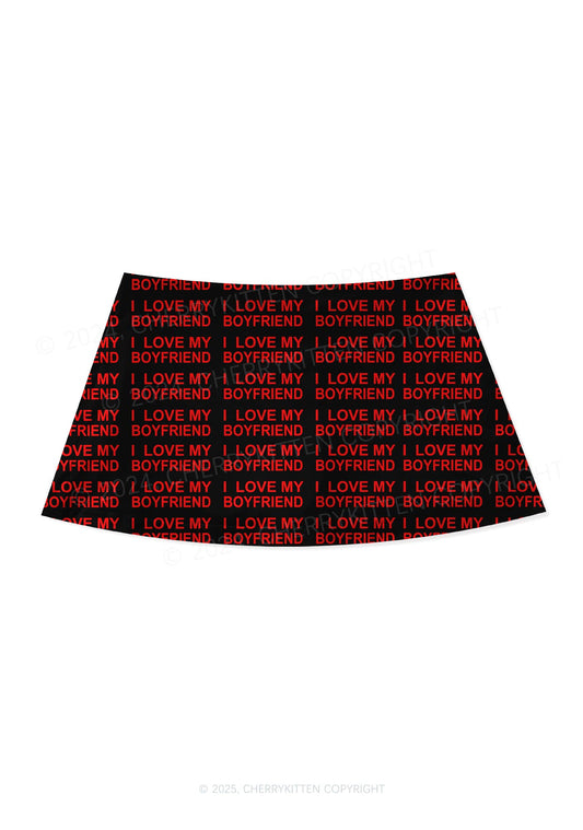 I Love My Boyfriend Y2K Print Mini Skirt Cherrykitten