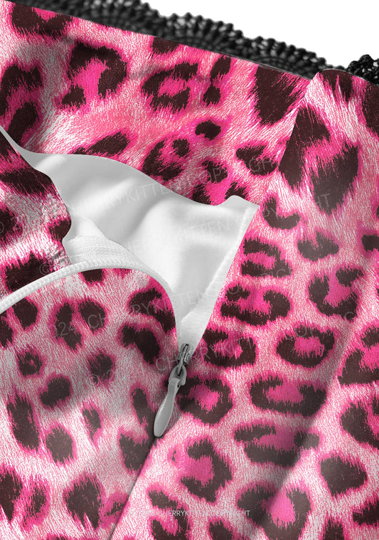 Pink Leopard Y2K Print Midi Skirt Cherrykitten