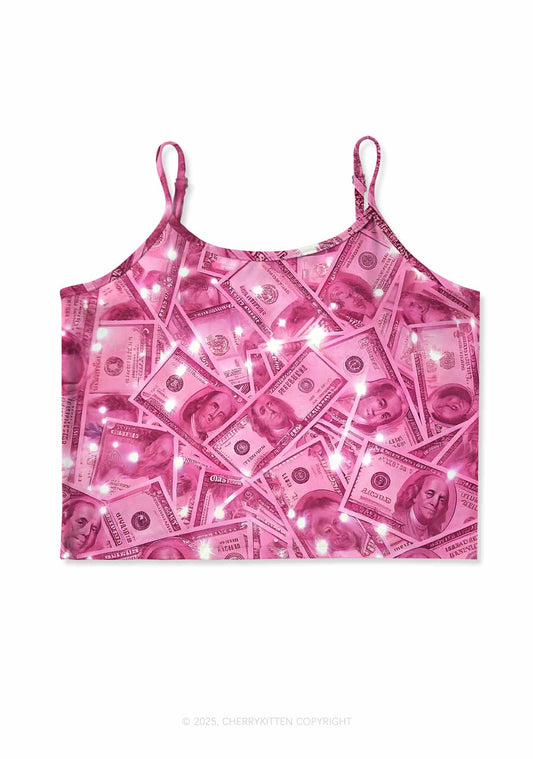 Pink Shiny Money Y2K Print Cami Crop Top Cherrykitten