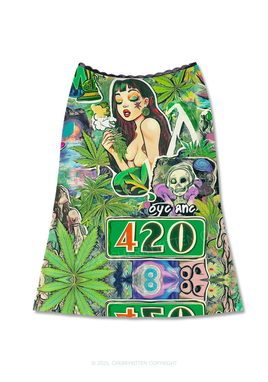 Smoking Girl Y2K Print Midi Skirt Cherrykitten