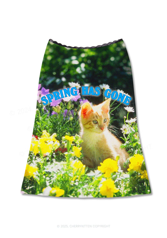 Spring Has Gone Y2K Print Midi Skirt Cherrykitten