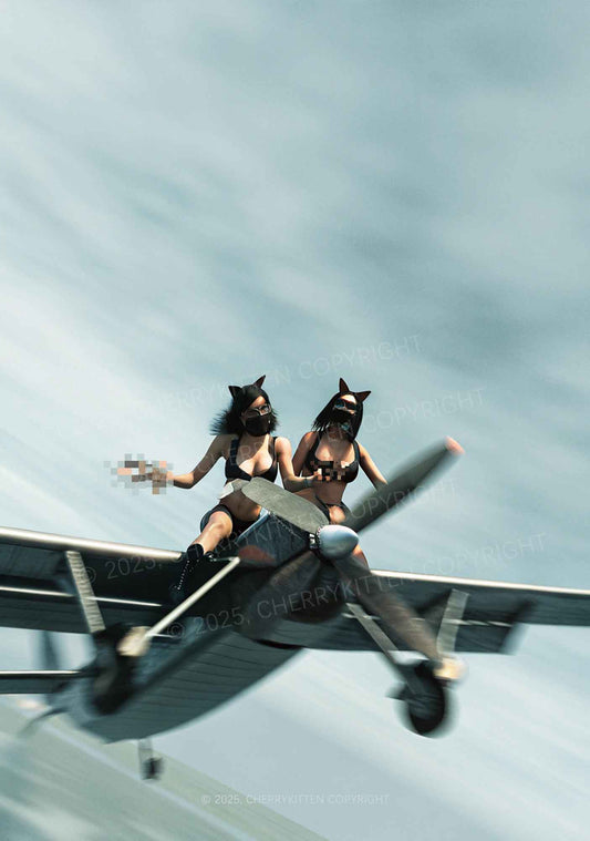 Girls Airplane Race Y2K Print Mini Skirt Cherrykitten
