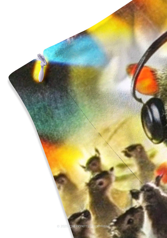 Guitar Raccoon Y2K Print Mini Skirt Cherrykitten