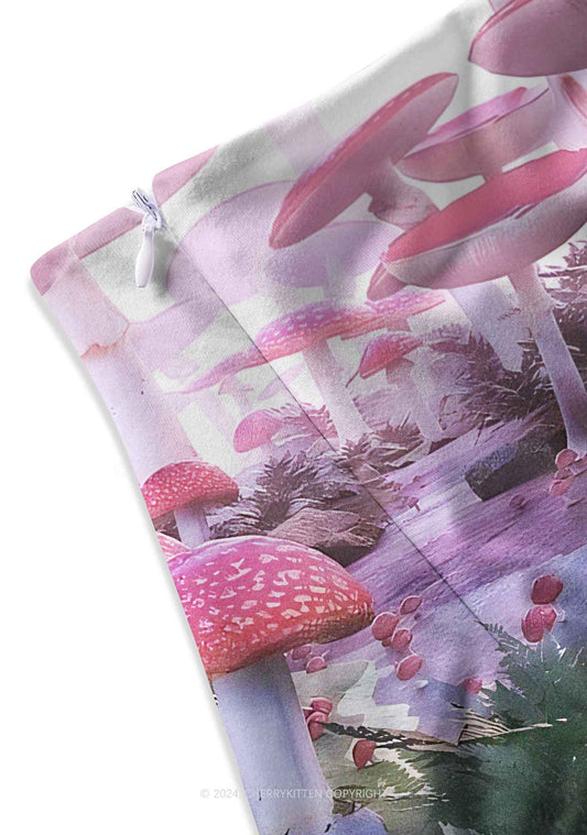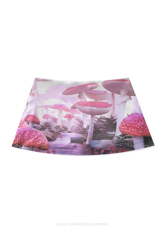 Pink Mushroom Y2K Print Mini Skirt Cherrykitten