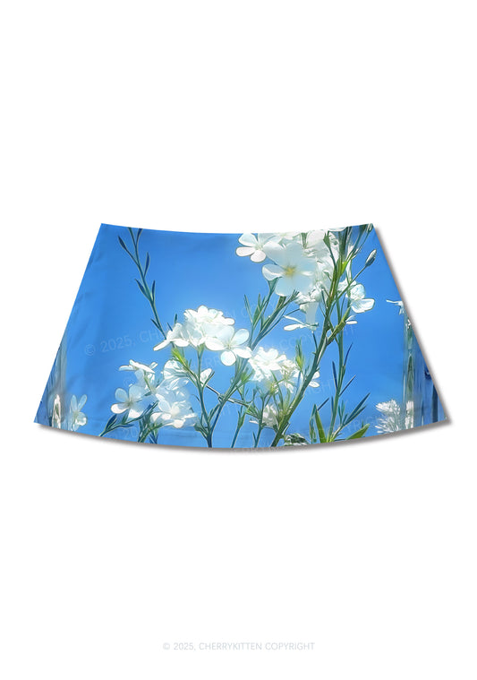 White Flowers Y2K Print Mini Skirt Cherrykitten