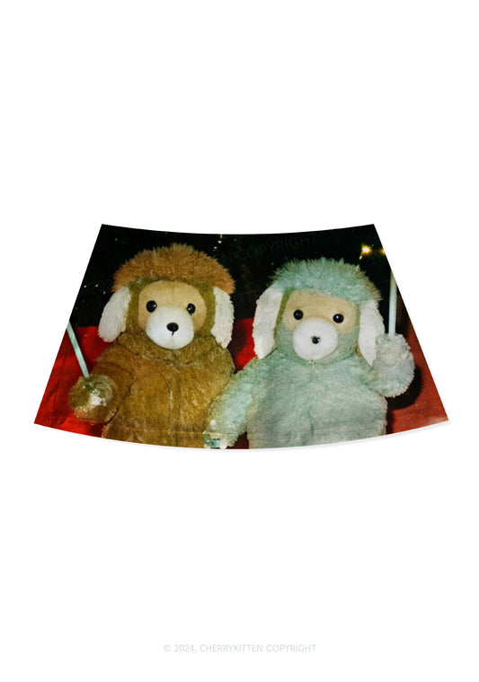 Bear Friends Y2K Print Mini Skirt Cherrykitten