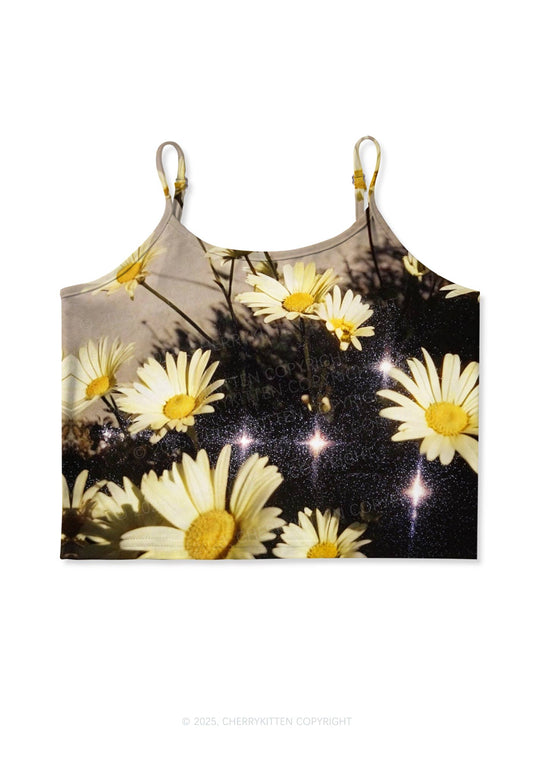 Yellow Daisy Y2K Print Cami Crop Top Cherrykitten