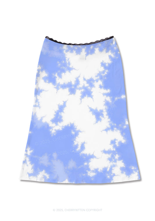 Blue Sky White Clouds Y2K Print Midi Skirt Cherrykitten