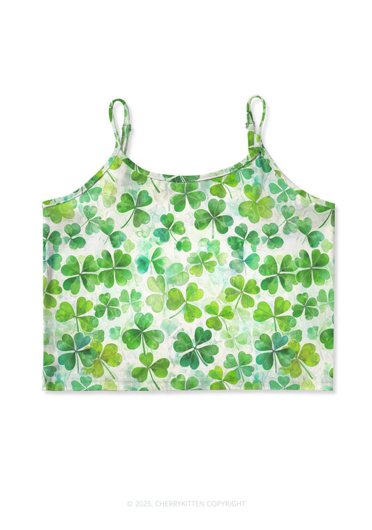 Green Shamrock Y2K Print Cami Crop Top Cherrykitten
