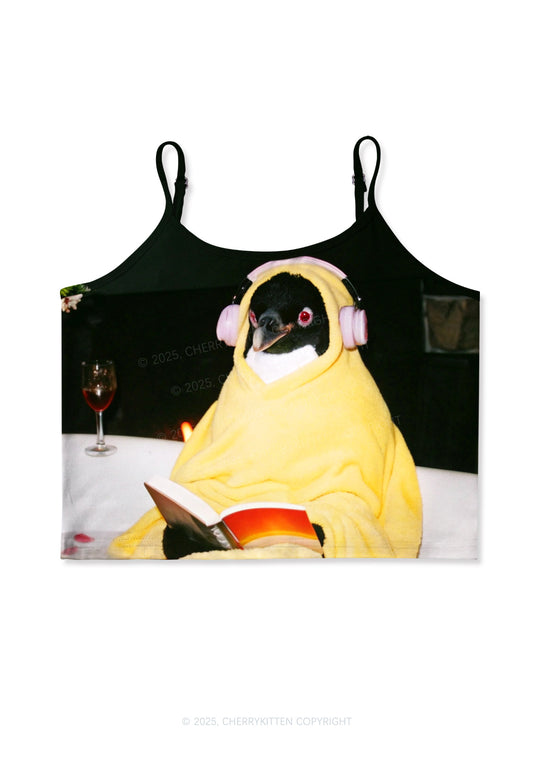 Penguin Bathing Y2K Print Cami Crop Top Cherrykitten