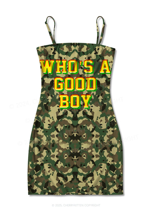 Whos A Good Boy Y2K Print Slip Dress Cherrykitten