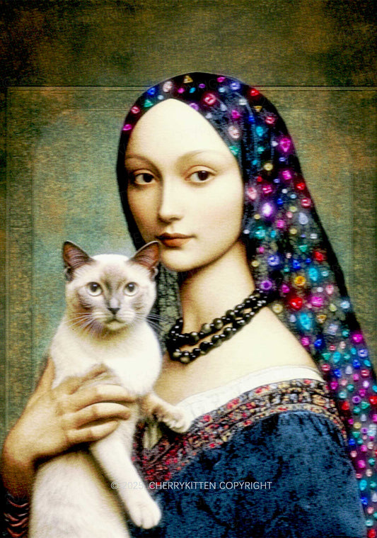 Renaissance Lady With Cat Y2K Print Slip Dress Cherrykitten