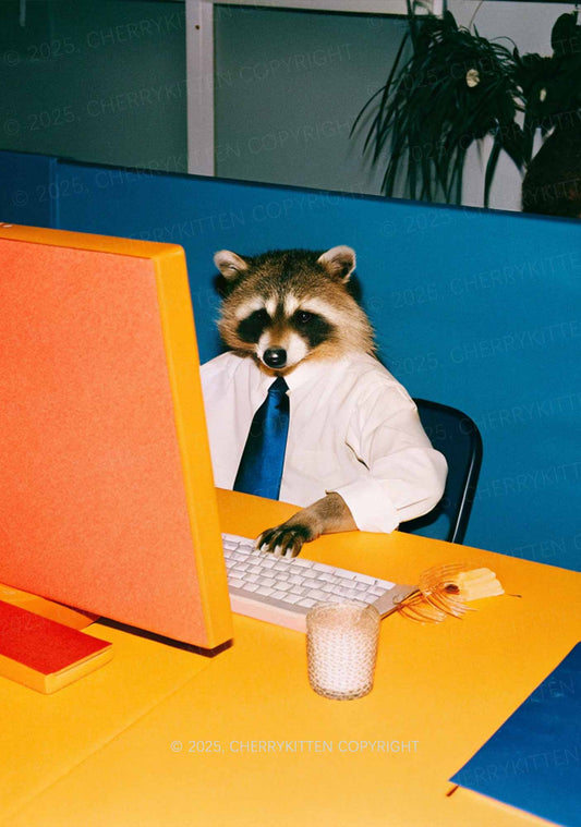 Office Raccoon Y2K Print Slip Dress Cherrykitten