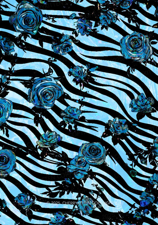 Blue Zebra Roses Y2K Print Slip Dress Cherrykitten