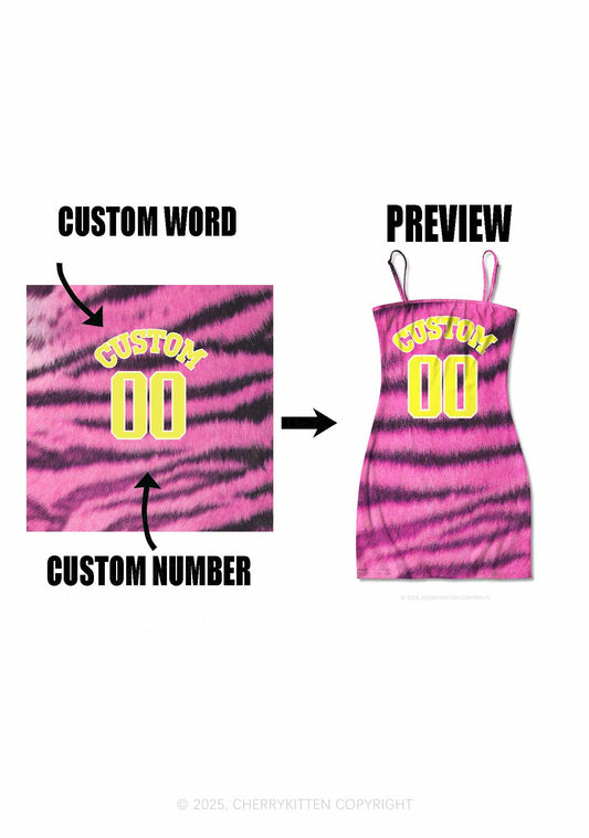 Pink Tiger Stripe Custom Text Y2K Print Slip Dress Cherrykitten