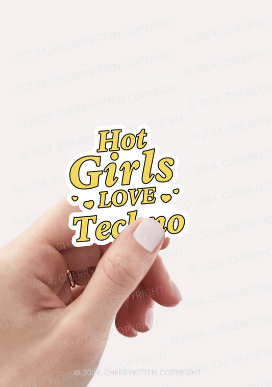 Hot Girls Love Techno 1Pc Y2K Sticker Cherrykitten