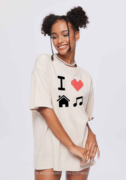 I Love House Music Y2K Shirts Washed Tee Cherrykitten