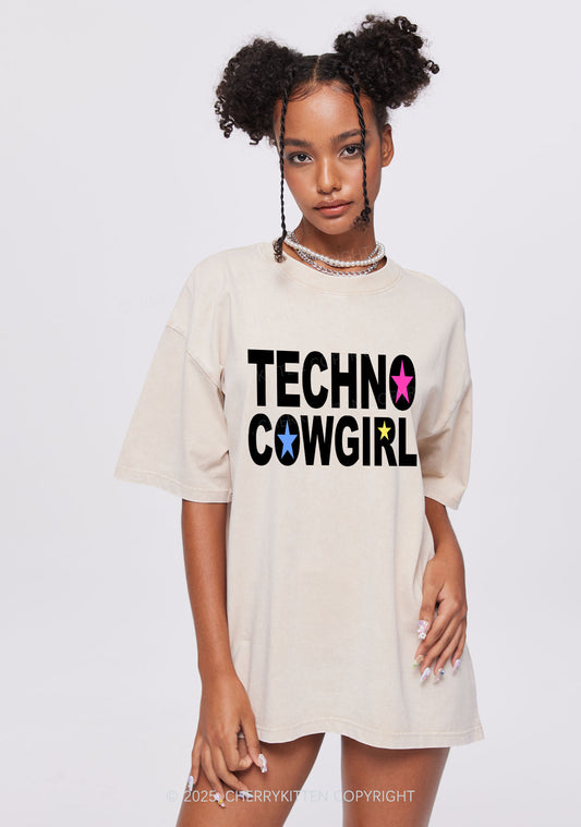 Techno Cowgirl Y2K Shirts Washed Tee Cherrykitten