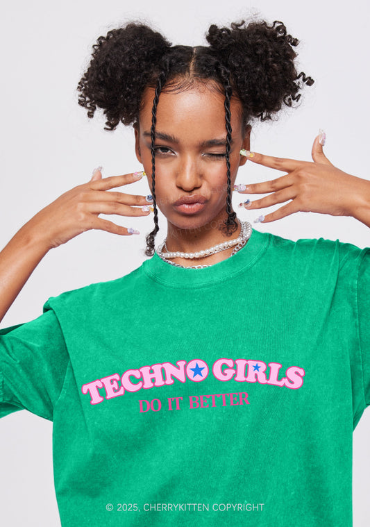 Techno Girl Do Better Y2K Shirts Washed Tee Cherrykitten