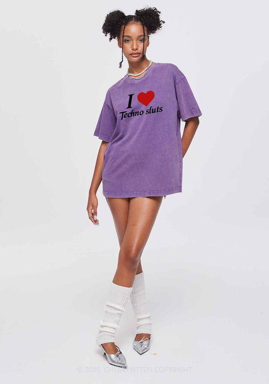 I Love Techno Slxts Y2K Shirts Washed Tee Cherrykitten
