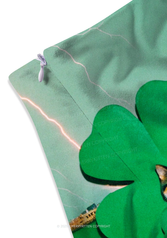 Lucky Cat St Patricks Y2K Print Mini Skirt Cherrykitten