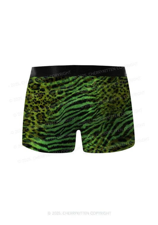 Retro Green Leopard St Patricks Y2K Print Men Boxer Briefs Cherrykitten