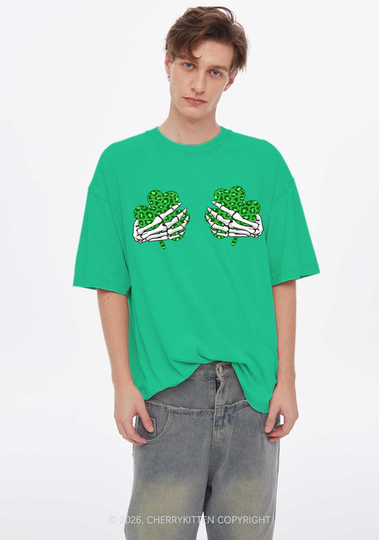 Skeleton Leopard Shamrock St Patricks Y2K Shirts Washed Tee Cherrykitten