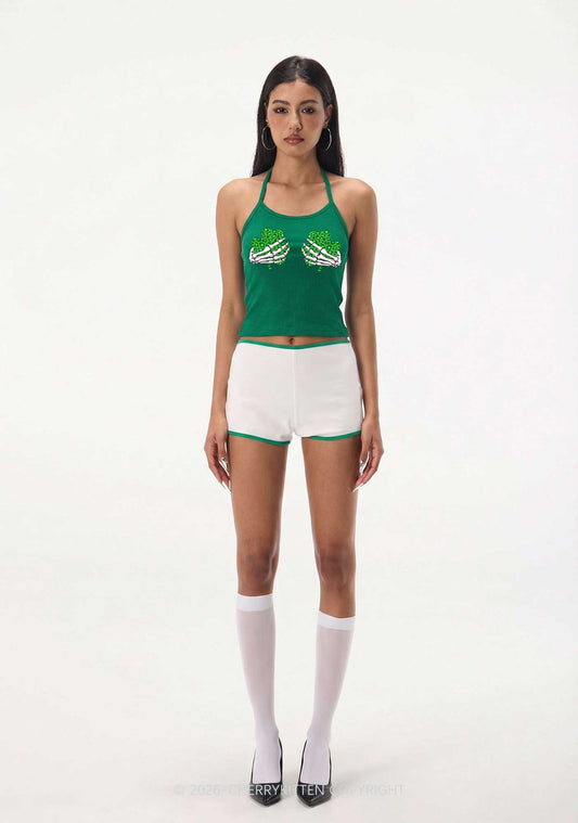 Skeleton Leopard Shamrock St Patricks Y2K Halter Neck Cami Cherrykitten