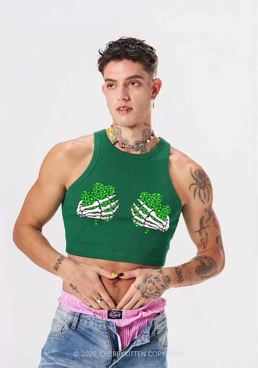 Skeleton Leopard Shamrock St Patricks Y2K Crop Tank Top Cherrykitten