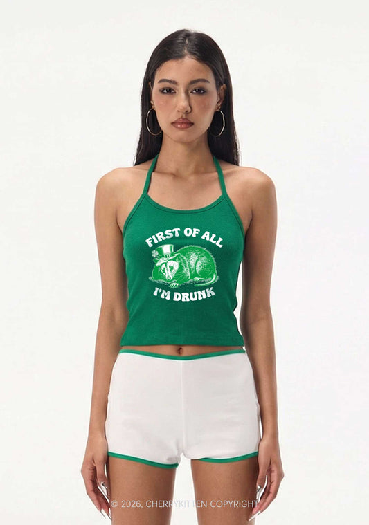 First Of All Im Drunk St Patricks Y2K Halter Neck Cami Cherrykitten