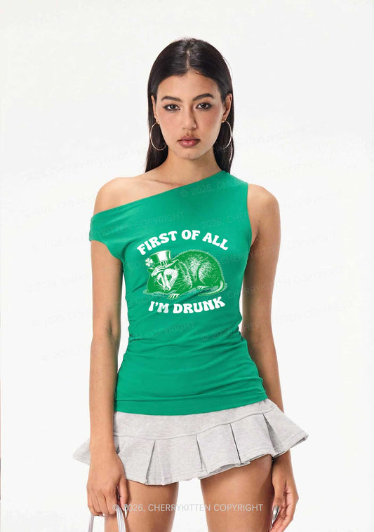 First Of All Im Drunk St Patricks Y2K Off Shoulder Tank Top Cherrykitten