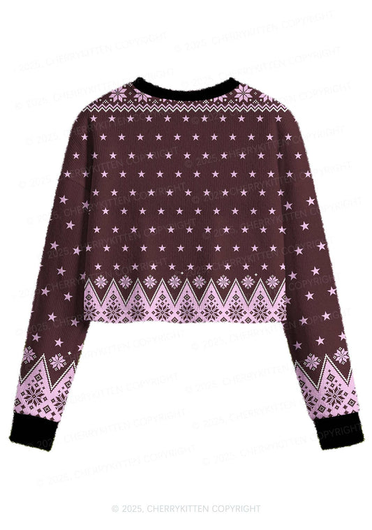 Overstimulated But Festive Y2K Christmas Crop Knit Sweatshirt Cherrykitten