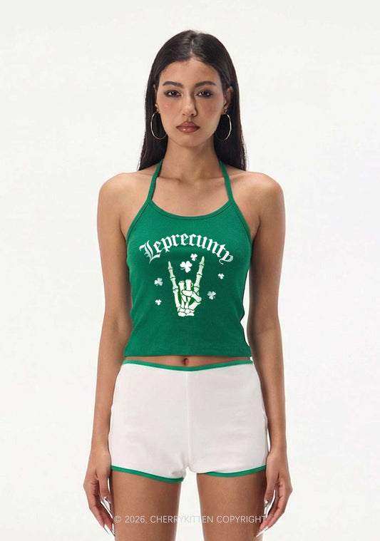 Leprecunty Skull St Patricks Y2K Halter Neck Cami Cherrykitten