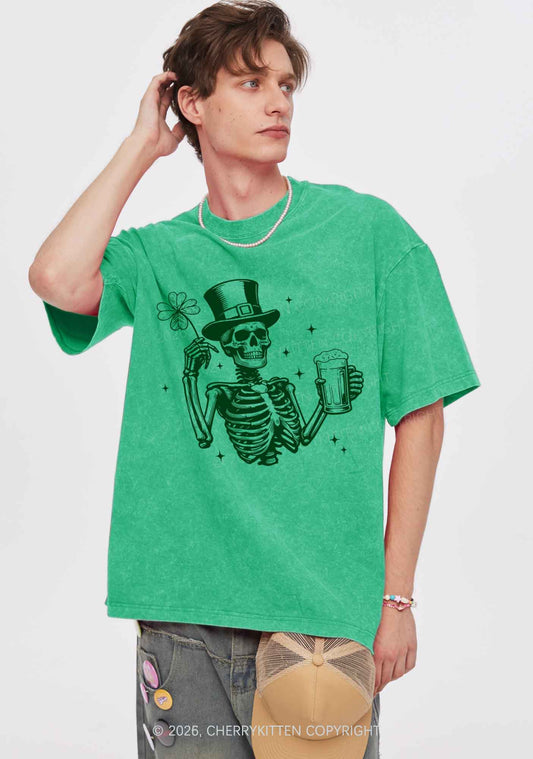 Green Skeleton St Patricks Y2K Shirts Washed Tee Cherrykitten