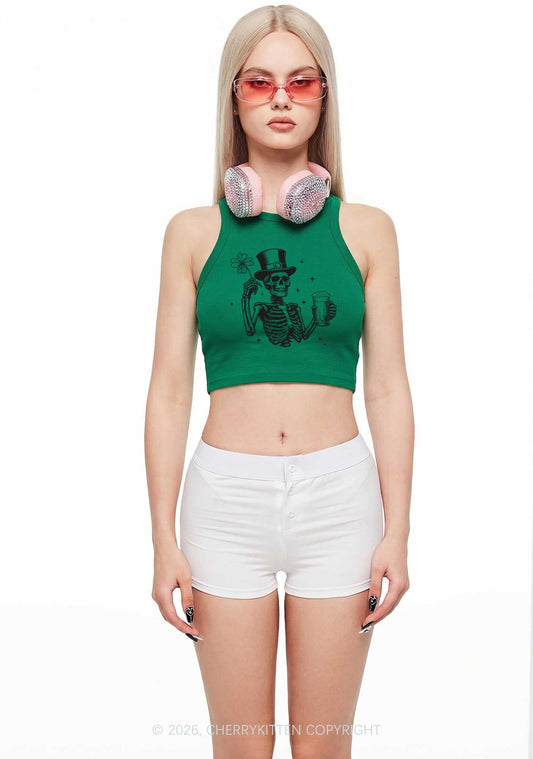 Green Skeleton St Patricks Y2K Crop Tank Top Cherrykitten