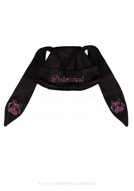 Rhinestone Delusional Y2K Bunny Ear Knitted Hat Cherrykitten