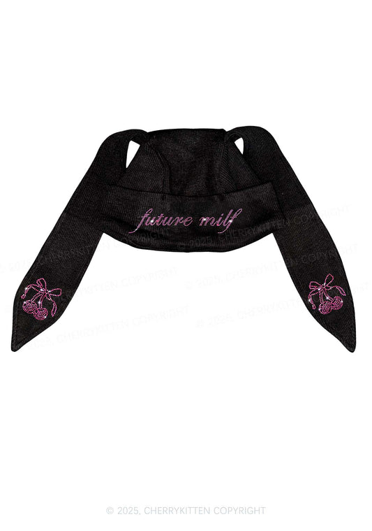 Rhinestone Future Mxxf Y2K Bunny Ear Knitted Hat Cherrykitten