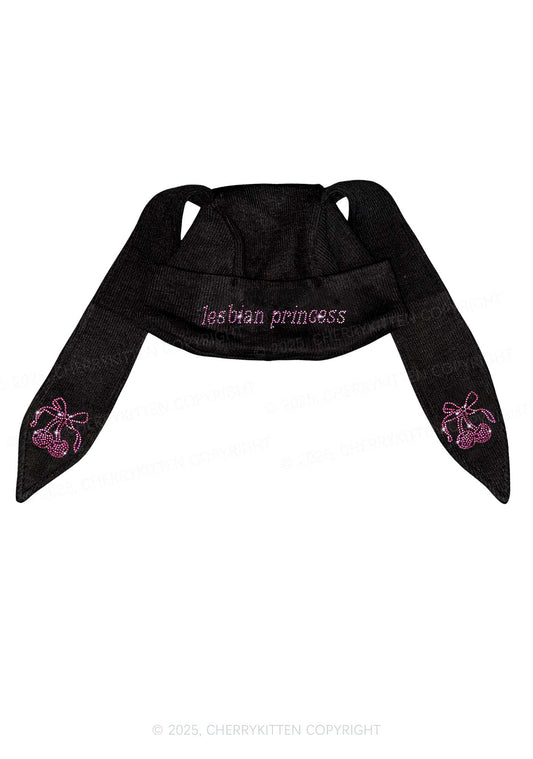 Rhinestone Lesbian Princess Y2K Bunny Ear Knitted Hat Cherrykitten