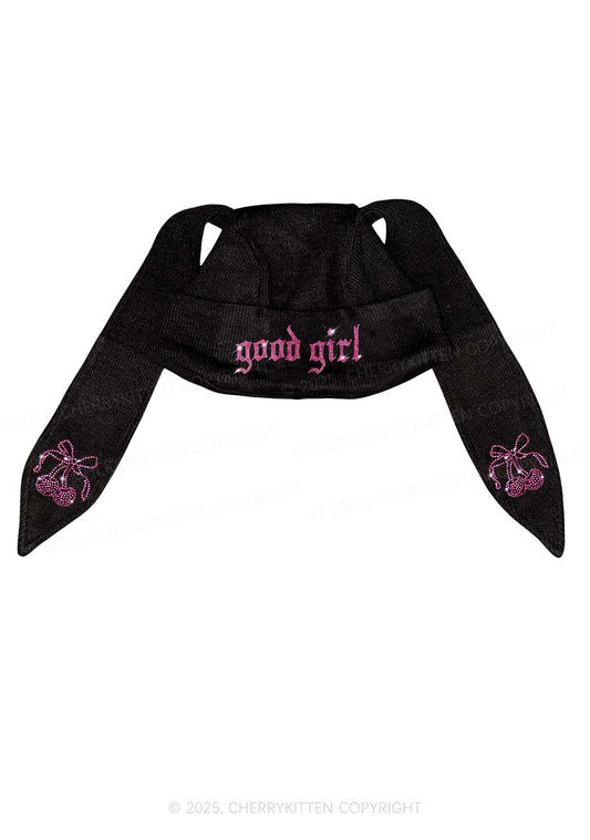 Rhinestone Good Girl Y2K Bunny Ear Knitted Hat Cherrykitten
