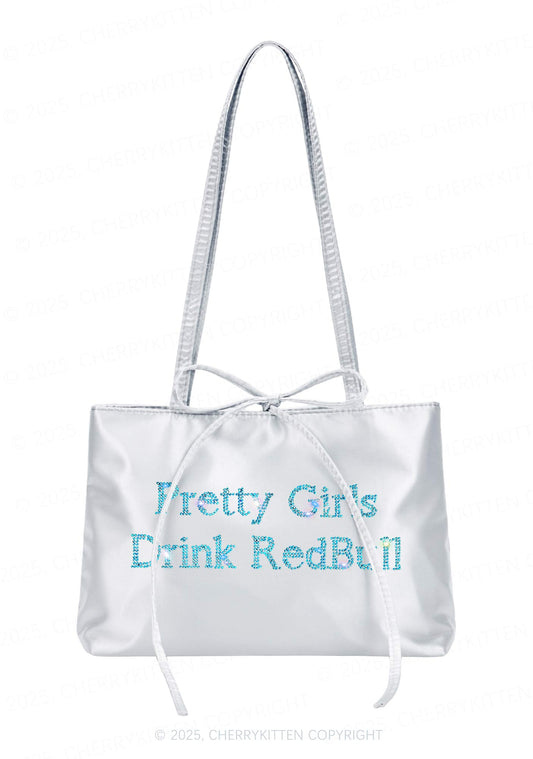 Rhinestone Pretty Girls Drink Red Y2K Satin Bags Cherrykitten